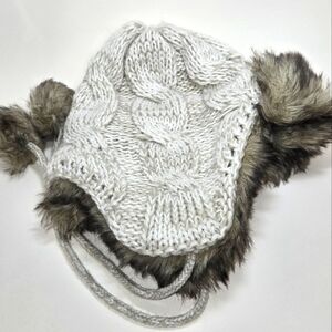 Sonoma Winter Knit Hat Faux Fur Lined Gray Ear Muffs Warm Like New Condition