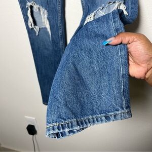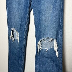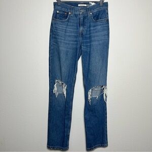 Levi's Women Low Pro Jeans 25" Dark Wash Rip Knee Straight Leg Western
