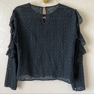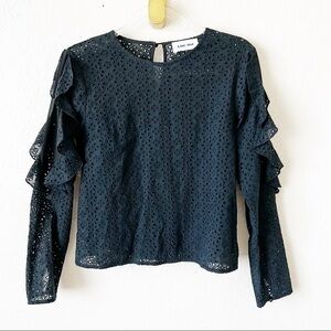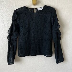 Long sleeve top from line and dot. Lace design all throughout with ruffle design at arms. Comes with cami underneath