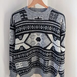 Vintage Retro Abstract Geometric Textured Crewneck Sweater In Gray/Black