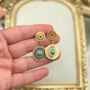 These earrings are the perfect mix of bold and elegant. The gold finish paired with natural turquoise creates a chic, versatile look that elevates everything from casual outfits to special occasions. Plus, they’re lightweight enough for all-day wear without compromising on statement-making style.