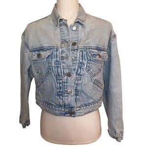 OLD NAVY Classic Jean Jacket in Faded Distressed Blue Denim SIZE SMALL PETITE