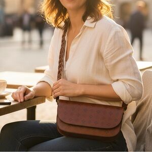 Signature Brushed Brass hardware, heavy handcrafted stitching