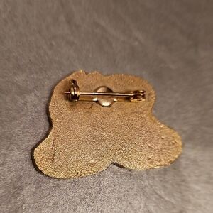 Humorous vintage enamel pin with playful frogs. Features green and yellow colors. Great gift!