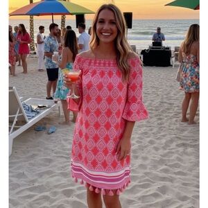 Nwt Cabana life pink and White Patterned Dress with Tassels beach cruise dress