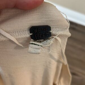 Free People Cream V-Neck Tee with Blue Sleeves we the free