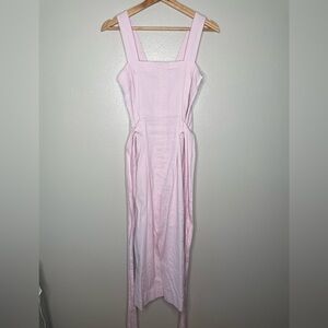 Vince | Linen-Blend Square Neck Midi in Blush Pink 2
