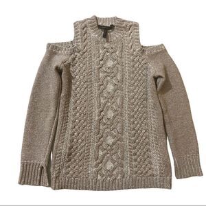 BCBGMaxAzria Cold Shoulder Champagne, Cream & Silver Metallic Arlene Sweater