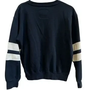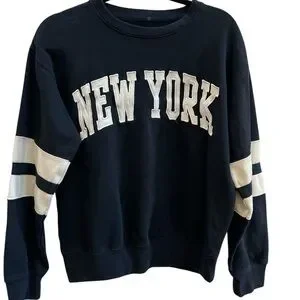 New York Popular Varsity Sweatshirt Navy White Stripe Sleeves Crewneck M