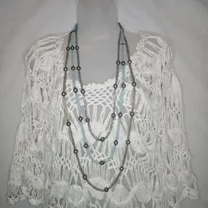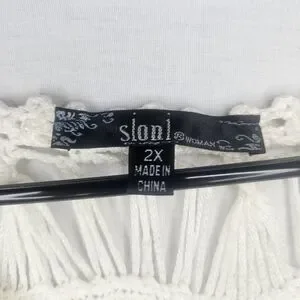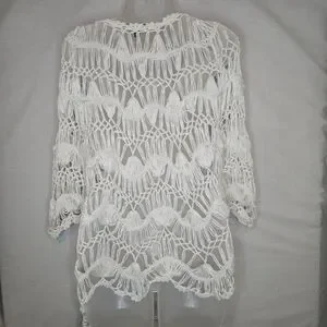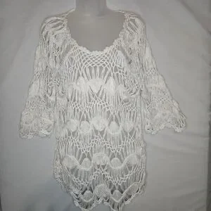Sioni Crocheted Open Weave Cream Tunic Top GUC 22" PTP