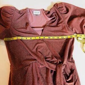 Saylor Deb Glittery Short Sleeve Side Tie Dress Size S Small