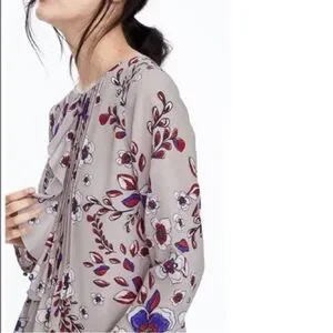 Banana Republic Floral Ruffle Blouse - Gray and Purple Size Small