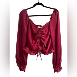 ASTR the Label Deep Pink / Red Long Sleeve Blouse Size Large NWT