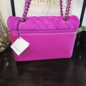 NWT. Kurt Geiger London Brixton Velvet shoulder bag. Add a pop of color to your outfit with this quilted lux diamond elegant pink shoulder bag. Perfect for any occasion.