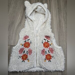 This adorable kids vest features a cozy design with floral embroidery. Perfect for keeping your little one warm and stylish.