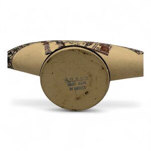 This captivating Greek pottery-style vintage napkin holder exudes timeless elegance and cultural charm. Standing at 4 inches tall, this masterfully handcrafted piece showcases intricate traditional designs inspired by ancient Greek art. The detailing of mythological characters, floral patterns, and geometric borders is a testament to fine craftsmanship. Its arched form is both practical and decorative, making it a functional table accessory and a beautiful conversation starter. This handmade treasure is a remarkable blend of history and artistry, perfect for adding a classic Mediterranean touch to any home.