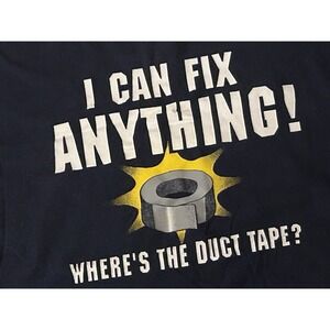 Y2K Funny Graphic T-Shirt XL Gildan I Can Fix Anything Duct Tape Joke Tee Navy