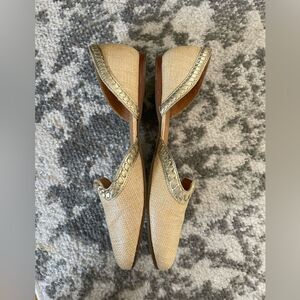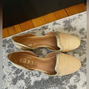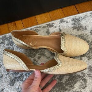 Jack Rogers Womens Contessa Flats Size 7.5 D'Orsay Woven Raffia Tan Gold. Condition is Pre-owned.