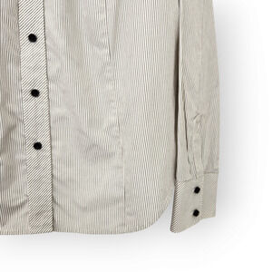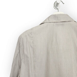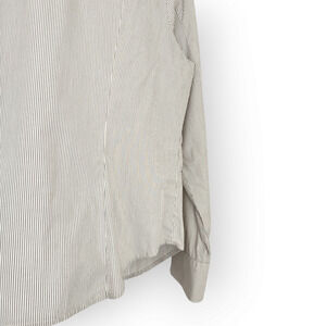 In excellent vintage condition a white and dark gray pinstripe v neck button down shirt in size 18 by Talbots