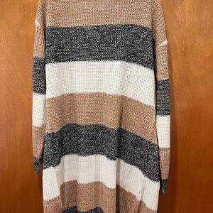 Cozy striped long cardigan with a mix of colors. Perfect for layering.