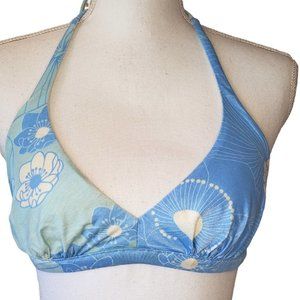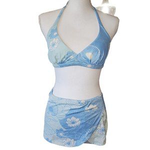 Vintage 60s 70s Pinup Retro Style Skirted Bikini Blue Halter Floral S/M READ.