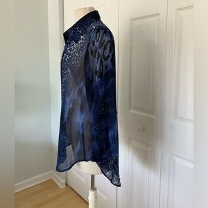 CLARA SUN WOO Leopard Blue Tunic Shirt Sheer Size Small