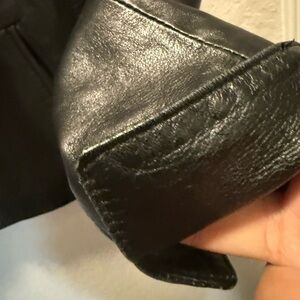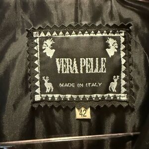 Timeless black buttery soft leather jacket by Vera Pelle. Sleek and stylish design. Perfect for versatile wear.
