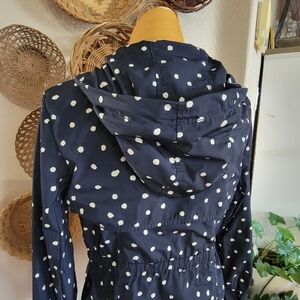 Anthropologie Daughters of the Liberation Navy, polka dot, hooded rain jacket coat.