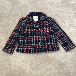 Janie And Jack Girls Plaid Tweed Jacket Blazer Size 3T-4T Double Breasted Coat