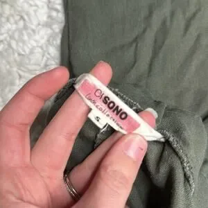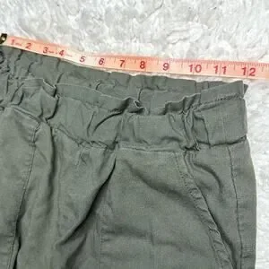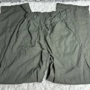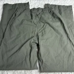 CiSono Linen Collection Olive Green Paperbag Waist Straight Leg PullOn Pant EE13
