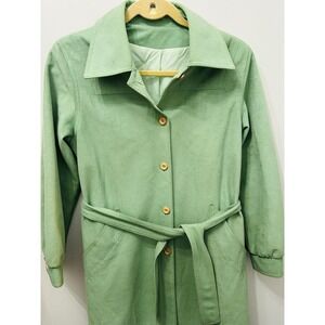 Vintage 70s Foxland By Lanson Suede Trench Coat Mint Green ILGWU Union Made