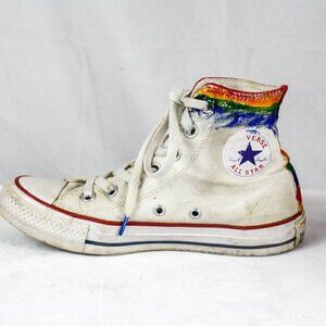 The rainbow paint is on the top of the ankle shaft and down the back of the shoe