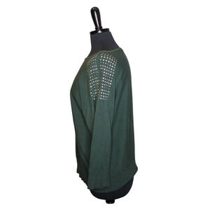 Cable & Gauge Sweater Green Gold Silver Stud Shoulder Detail Pullover Size XL