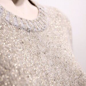 J. Crew Factory Metallic Lambs Wool Blend Crew Neck Sweater Tan Women Size XS