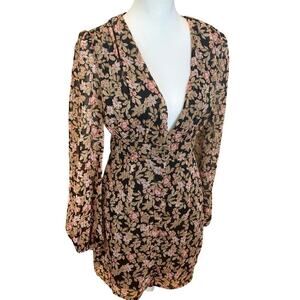 NASTY GAL BLOUSEN BROWN FLORAL LONG SLEEVE DRESS WOMENS SIZE 6