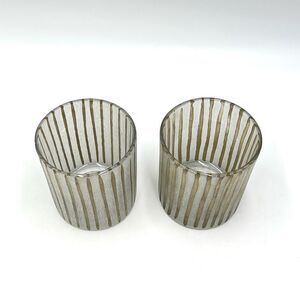Pair of Crate & Barrel - Minx Striped Votive Candle Holders - Two (2) Set NEW