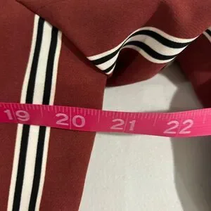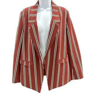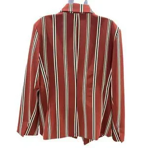 7TH AVE New York & Company Red/Rust Brown White Striped Blazer Women L Large
