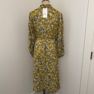 NEW Zara Medium Yellow Floral Jacquard Metallic Midi Dress ~ Cottagecore Peasant