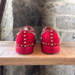 Christian Louboutin Red Suede Pik Boat Spike Slip On Sneakers