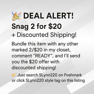 Bundle this item with any other marked 2/$20 in my closet, comment "READY", and I’ll send you the $20 offer with discounted shipping!