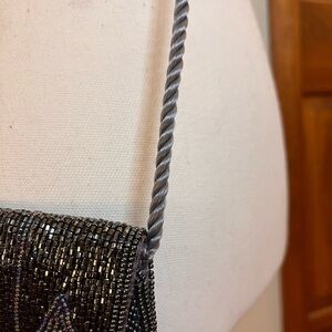 Vintage Beaded Black Silver Evening Purse Double Sided Scallop Flap Flapper Glam