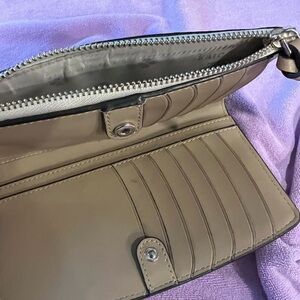 Elegant leather wallet by Kate Spade. Features a tan body with cream accents. PLEASE LOOK AT PHOTOS FEW SCUFFS BUT IN GREAT CONDITION