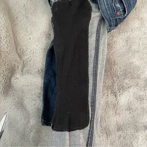 These Hudson Jeans are the perfect blend of edgy style and comfort. They feature a trendy button fly and heavily distressed detailing with a unique black thermal lining behind the rips, making them a great choice for cooler weather or just adding some texture to your look.