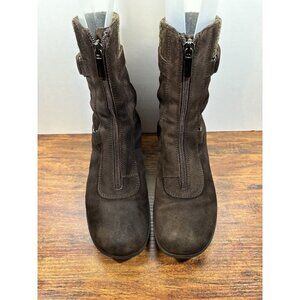Aquatalia Womens Size 7.5 Brown Suede Ankle Boots Hidden Wedge Zipper Shoes