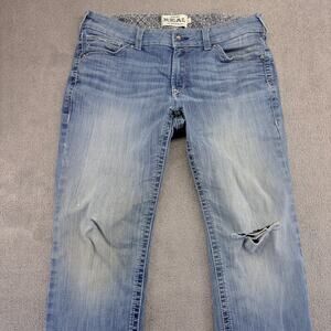 Ariat Jeans Mens 32x34 Blue Real Denim Real Straight Distressed (Measures 34x34)