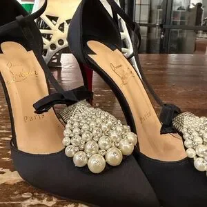 🌹 AD: Rare Louboutin "Goyetta" Satin Pearl & Crystal T-Strap Pumps 🌹
