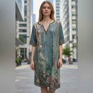 Step into spring with this charming Floral Print V Neck Short Sleeve Button A-Line Dress. This dress features a captivating floral pattern, a flattering V-neckline, and short sleeves, perfect for warmer days. The A-line silhouette is universally flattering, offering a comfortable yet stylish fit. A full button-down front adds a touch of classic detail. Ideal for casual outings, garden parties, or a leisurely day out. New condition, ready to wear.