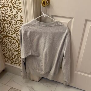 Cozy gray Champion sweatshirt with 'Ole Miss' print in navy. Does have some staining :/ but it’s from a pet and smoke free home!