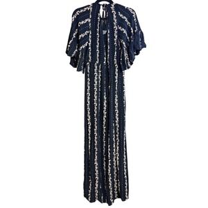 American Eagle M Blue Floral Maxi Dress Flared Tied Wedding Cottage Boho Fest