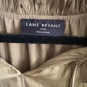 Chic and versatile brownish gold blouse by Lane Bryant. Features a relaxed fit and stylish design.